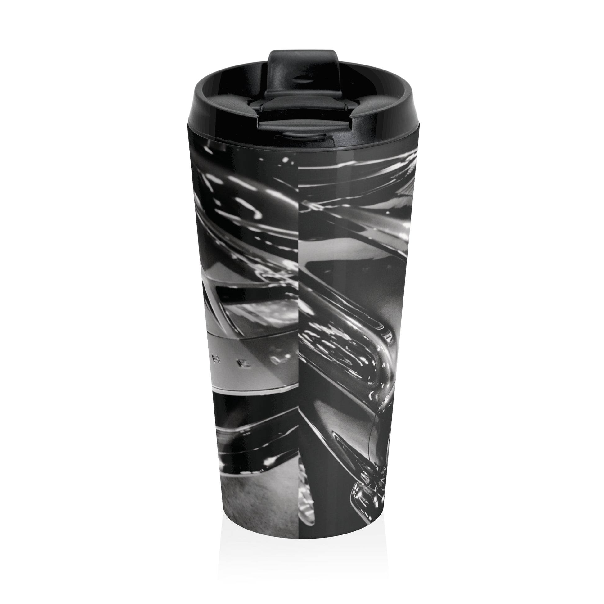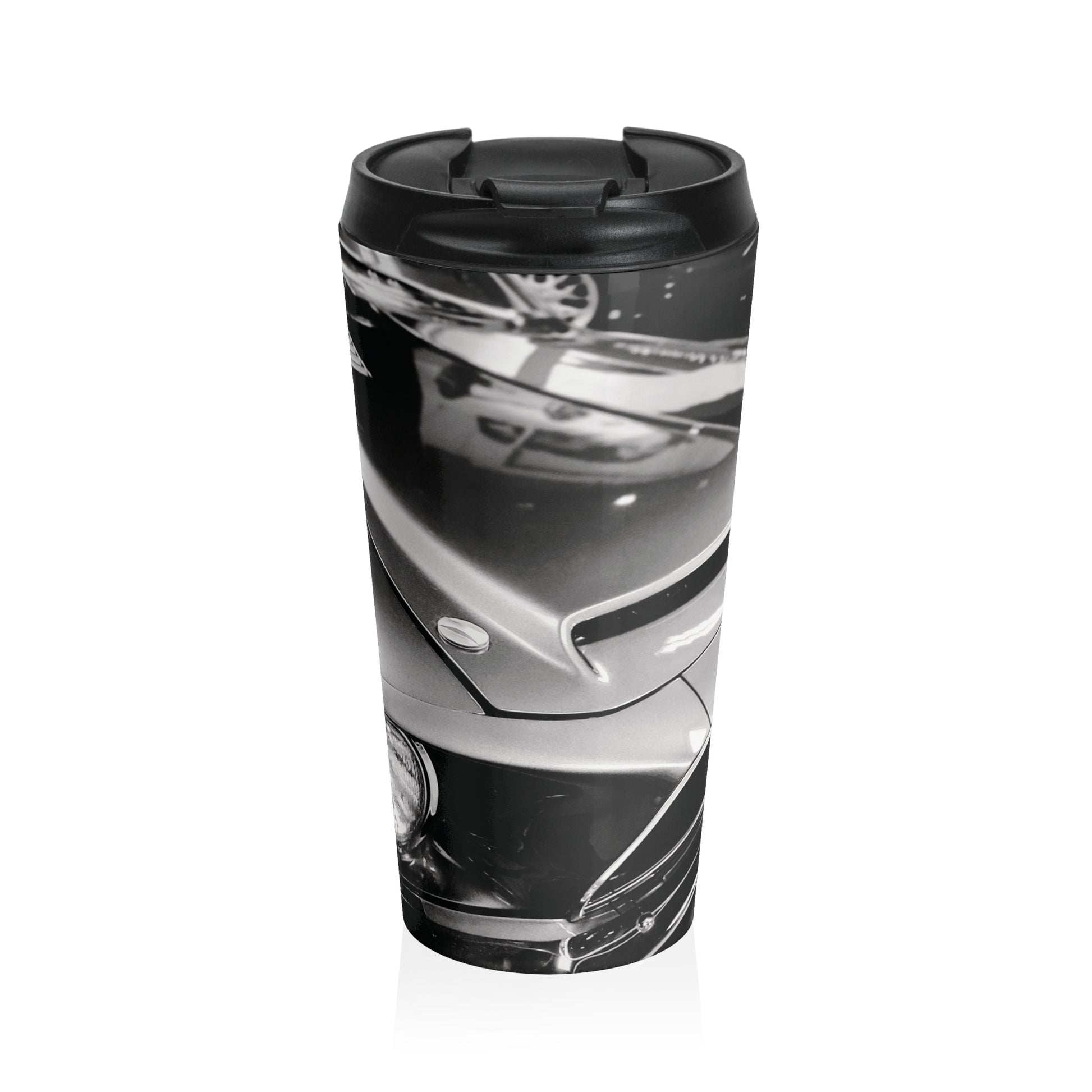 This 15oz stainless steel travel mug carries the quiet power of the open road. Wrapped in a one-of-a-kind black and white photograph of a vintage muscle car, it captures the clean lines, chrome curves, and mechanical grit that made classic American cars timeless. The imagery feels honest—motion frozen in steel—turning your daily coffee into a moment of automotive history. The vacuum-insulated stainless steel body keeps drinks hot or cold, while the BPA-free, screw-on flip lid stays secure when you’re on the move. Its slim profile slides easily into cup holders and backpacks, built for commutes, shop mornings, and long drives alike. This mug’s for folks who appreciate classic cars, understated style, and the beauty of machines that were built to last.